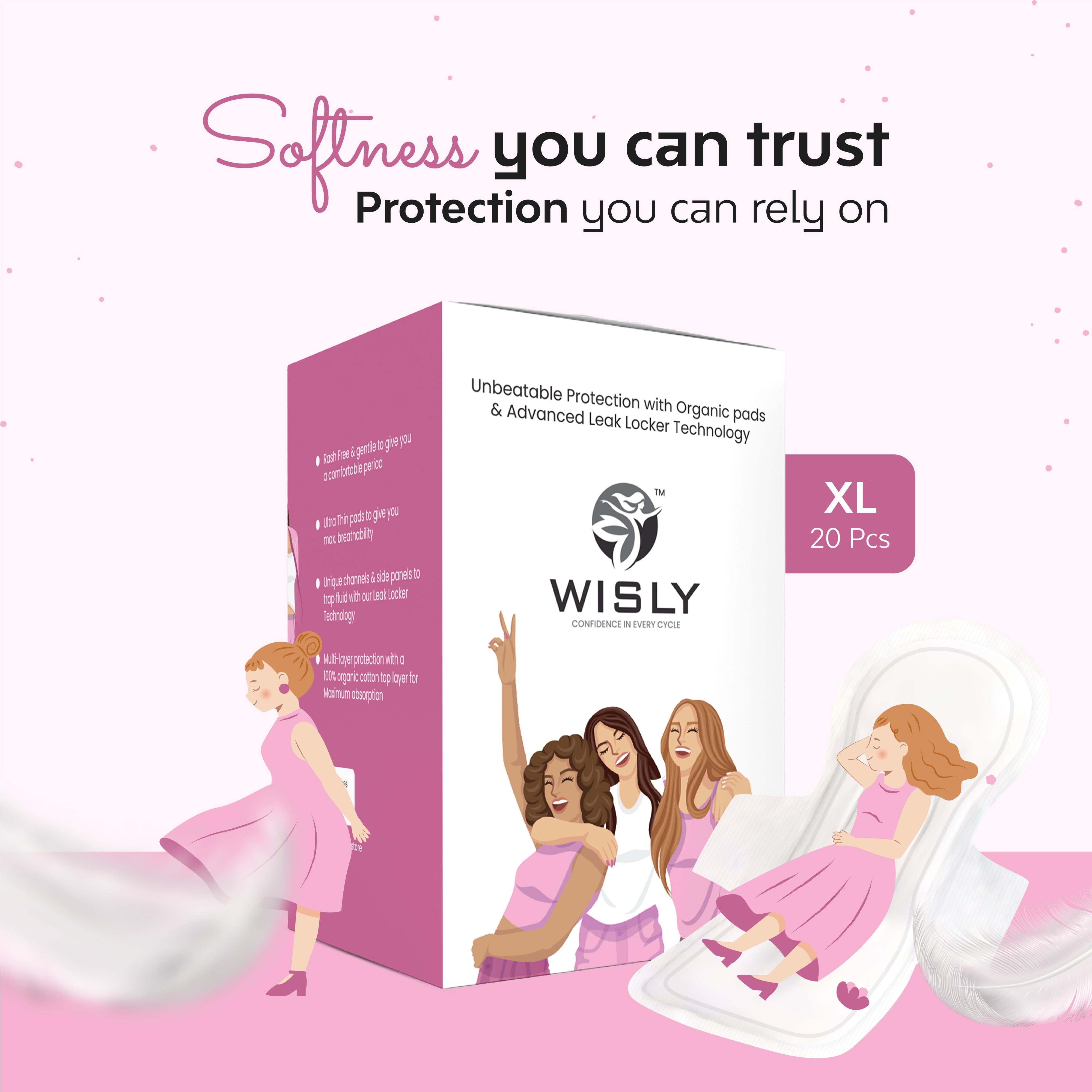 Wisly XXL-20 Comfort Pack| Organic Rash-Free Sanitary Pads for Women | Her Superpower Days