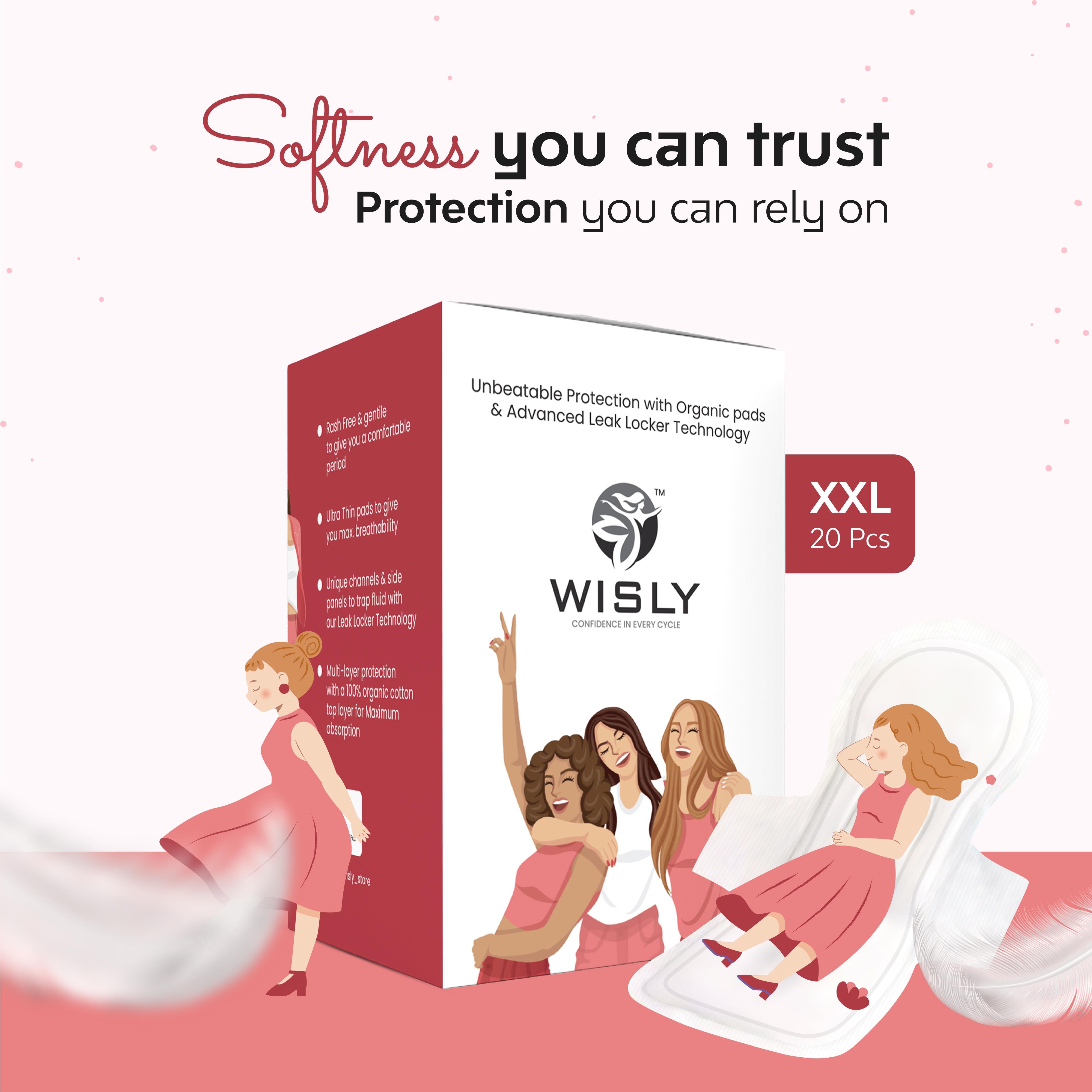 Wisly XXL-20 Comfort Pack| Organic Rash-Free Sanitary Pads for Women | Her Superpower Days